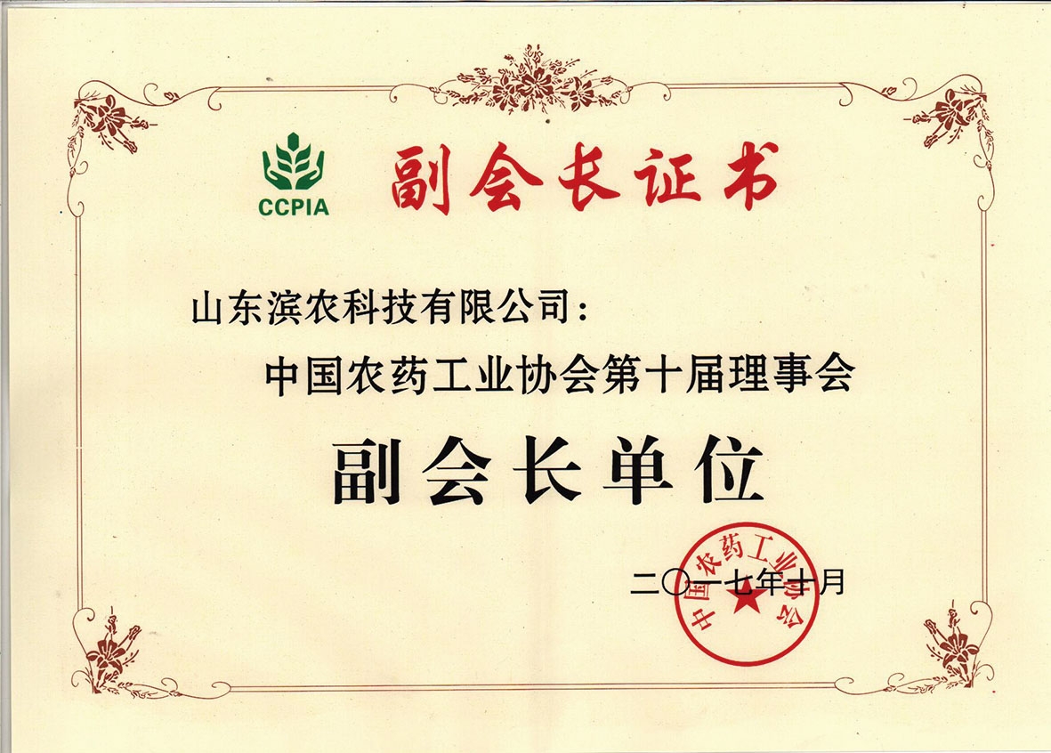 ■2017-10-13 我公司被評(píng)為中國(guó)農(nóng)藥工業(yè)協(xié)會(huì)第十屆理事會(huì)副會(huì)長(zhǎng)單位