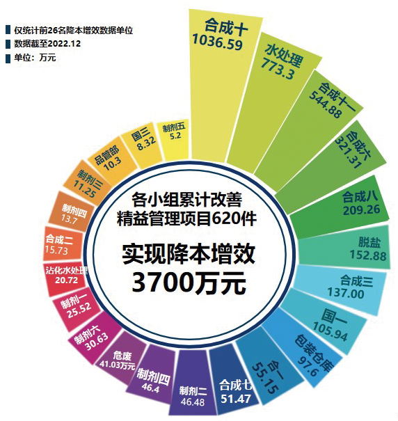 結合2022年各團隊改善績效及總結匯報及各系統(tǒng)分管領導評定,公司評選出六個年度優(yōu)秀精益改善團隊:國一車間、制劑一車間、制劑三車間、水處理車間、合成六車間、合成一車間。