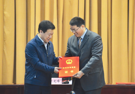1月3日,在濱州市委、市政府隆重召開(kāi)的全市科學(xué)技術(shù)獎(jiǎng)勵(lì)大會(huì)上,我公司自主研發(fā)并實(shí)施的發(fā)明專利“一種含有異丙甲草胺和特丁凈的除草組合物”榮獲濱州市重大專利獎(jiǎng),市委書(shū)記、市人大常委會(huì)主任張光峰為公司董事長(zhǎng)黃延昌頒獎(jiǎng)。